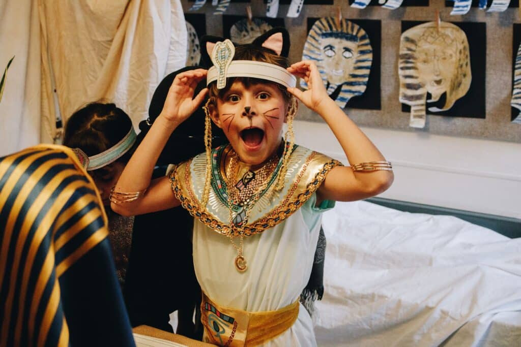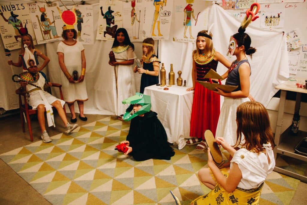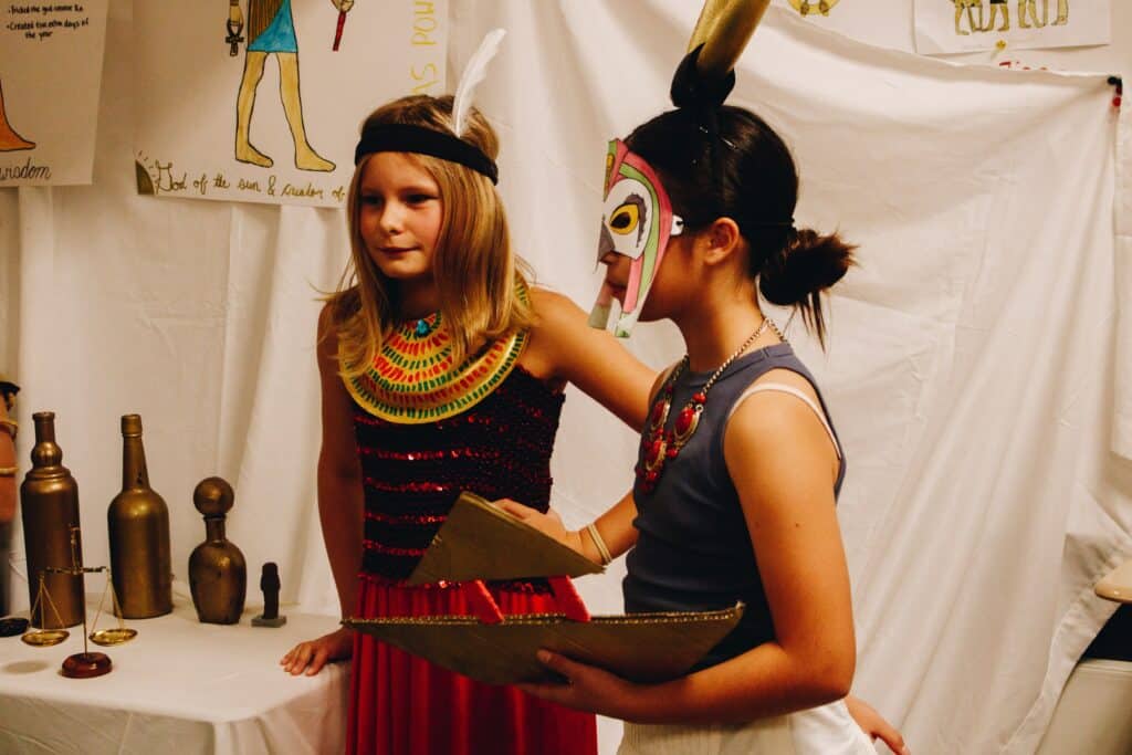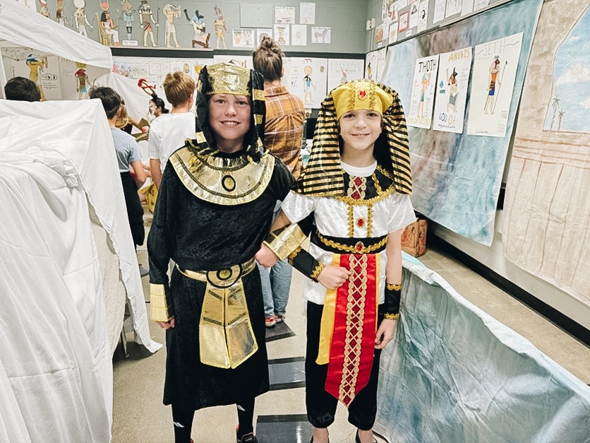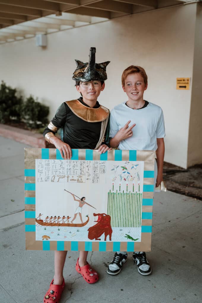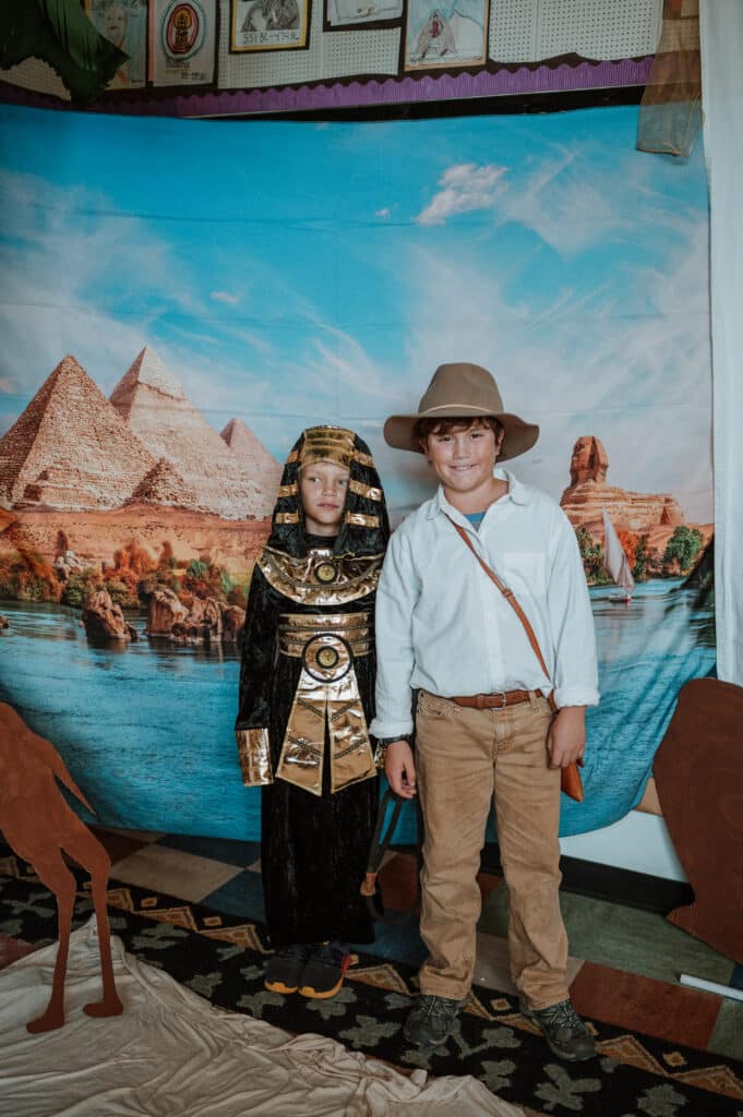 Our Fall History event, “Night on the Nile,” was an AMAZING way to wrap up our studies of ancient Egypt! History Days are always a special time for our school to ALL join together, from kindergarten all the way to high school! Each level focused on a different Egyptian “experience,” including scarab painting, working with hieroglyphs, creating a cartouche, a journey through the underworld and many other immersive experiences. These events not only put a metaphorical bow on this unit of study, but also create lasting memories for students of what they have learned. Enjoy some enchanting pictures from SLOCA’s night on the Nile!