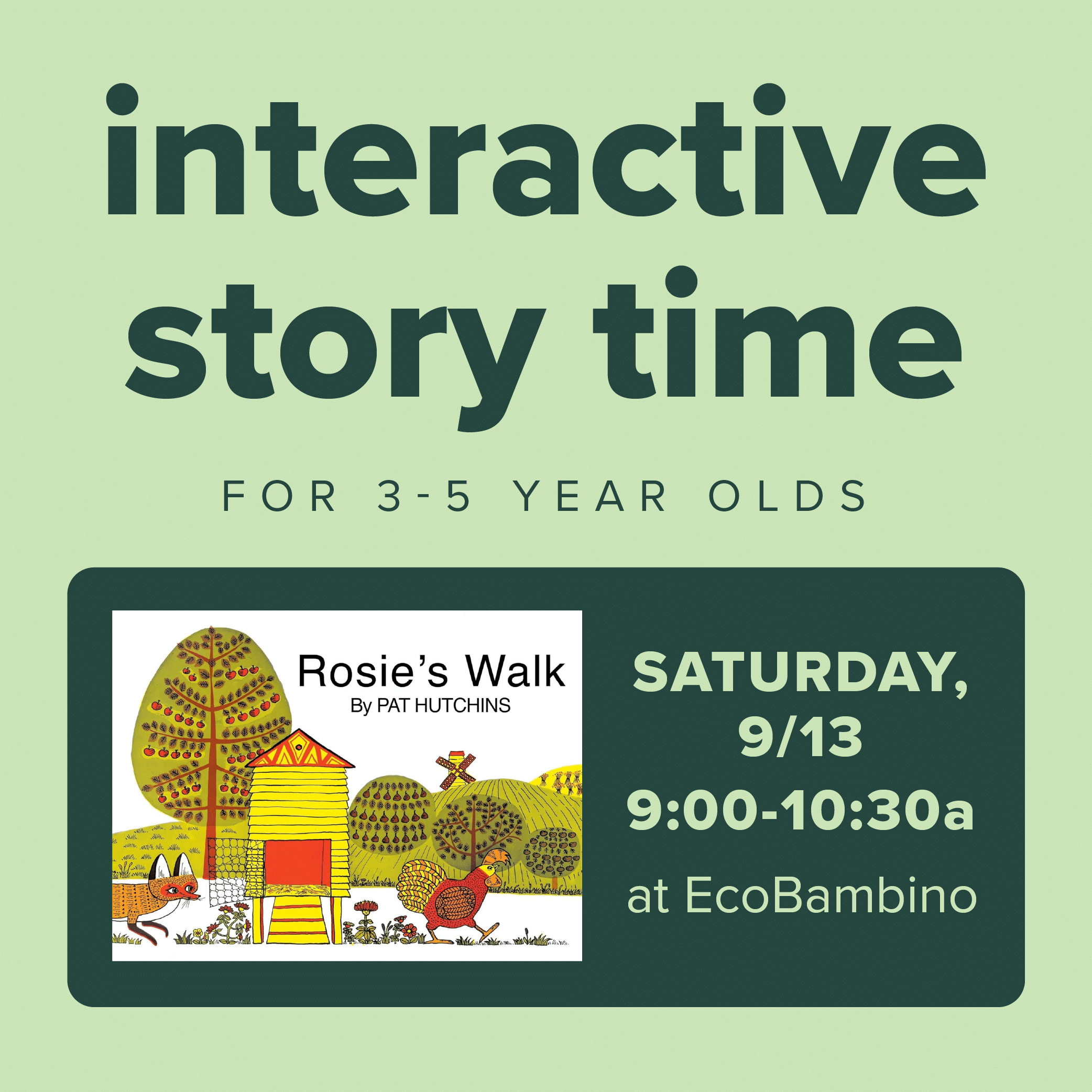 1 event found. EcoBambino « All Events Events at this venue Today 09/13/2025 09/13/25 - 03/06/2026 Now Select date. September 2025 Sat 13 Interactive Storytime Featured 09/13/25 @ 9:00 am - 10:30 am EcoBambino Previous Events Today Next Events Subscribe to calendar Google Calendar iCalendar Outlook 365 Outlook Live